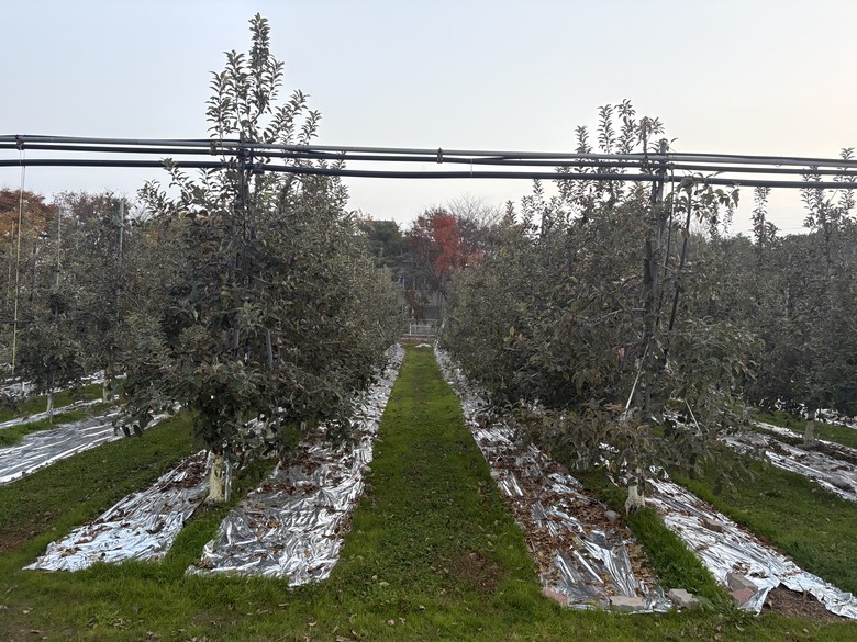 유목원이나 조기 낙엽 발생 과원, 병해충 피해가 많았던 과원은 동해(凍害) 발생 우려가 크므로, 원줄기에 백색 수성페인트를 칠하거나 짚, 신문지 등 보온자재를 감싸는 등 보온 조치를 반드시 실시해야 한다.