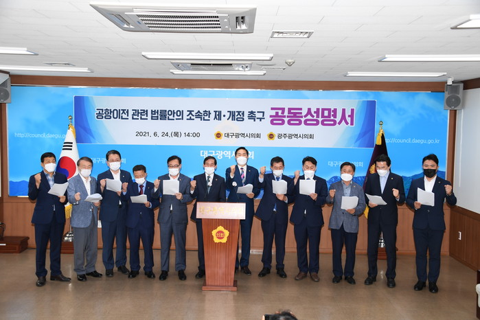 한편, 광주와 대구시의회는 24일 군공항이전 특별법 개정 촉구 성명을 발표한 뒤 향후 중앙정치권과 정부를 함께 방문하는 등 특별법 조기 제.개정을 위한 압박수위를 높여 나갈 계획이다.