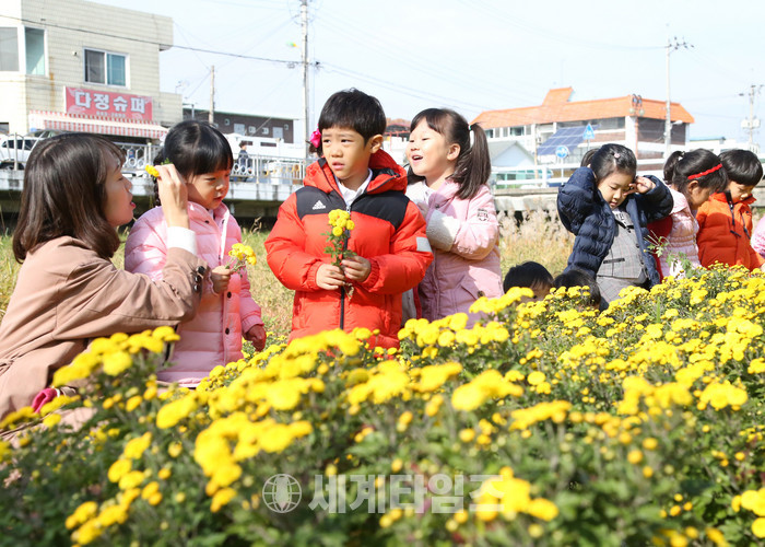올봄 용산동 마을공동체는 충주천변 3천여㎡에 국화꽃밭을 조성했다.