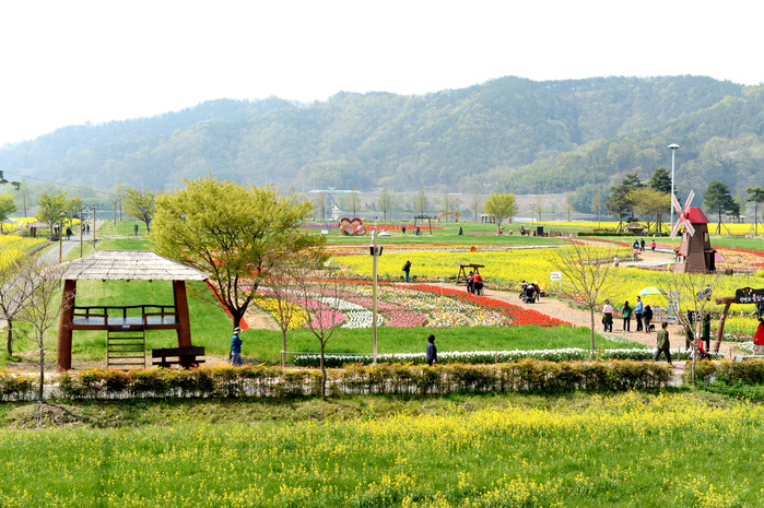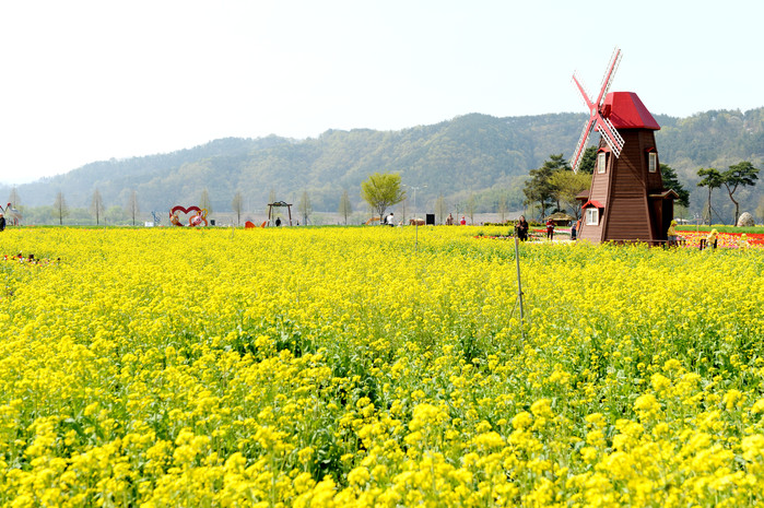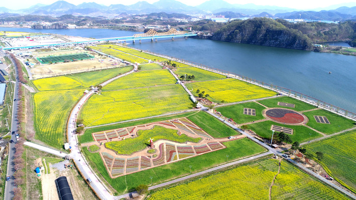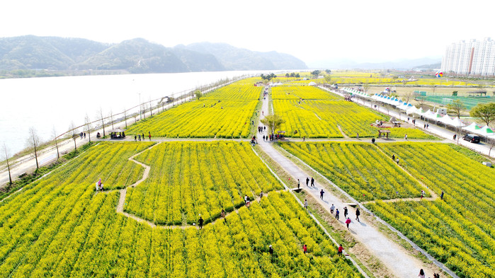 [창녕군=세계타임즈 최성룡 기자] 8일, 창녕낙동강유채축제 행사장인 남지체육공원이 노란 유채꽃으로 물들어 관광객을 맞이할 준비를 하고 있다.