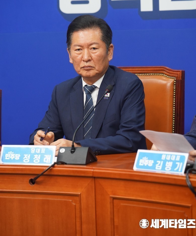 더불어민주당 '정청래' 당 대표가 8일 국회에서 열린 최고위원회의에서 발언하고 있다.