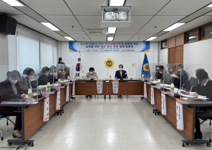 [충북=세계타임즈 이현진 기자] 충북도의회 교육위원회는 24일 충북도의회 회의실에서 “포스트 코로나 시대, 문화예술교육의 교육적 목표 실천을 위한 접근 방안 마련 및 정책 대안 제시”라는 주제로 정책 토론회를 개최했다.