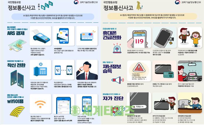과기정통부의 보도자료에서는 12시 45분경 케이티(KT)로부터 서비스 복구가 보고되었지만, 과기정통부는 정보통신사고 위기관리 지침(매뉴얼)에 따라, 정보보호네트워크정책관을 상황실장으로 ’방송통신재난대응상황실‘을 구성하여 완전한 복구여부를 확인중이다 하였는데 지난 22일 발표한 '재난대응 안전한국훈련' 홍보물 어디에도 정보통신사고에 대하여 조치 할 해당 내용은 없었다.