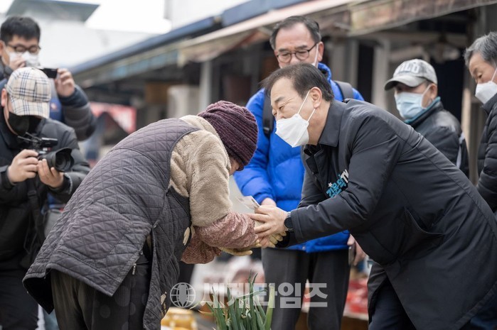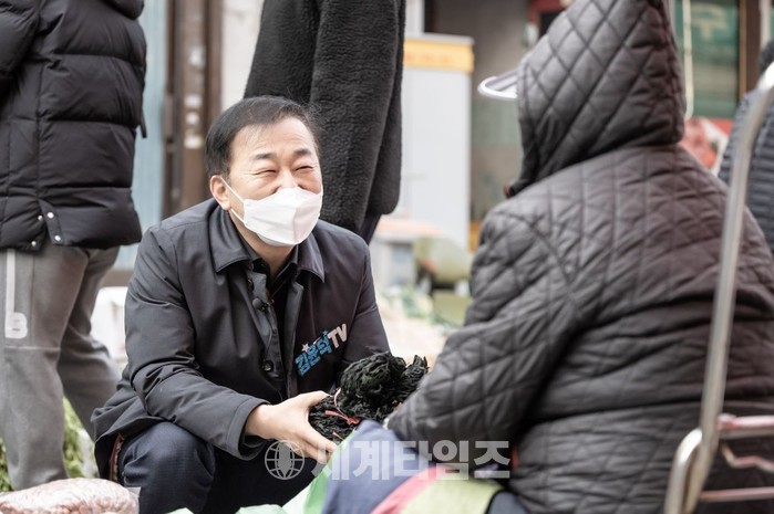 이날 김윤덕 의원은 차가운 날씨 속에서도 물건을 파는 할머니들의 손을 잡고, 정을 나누는 등 코로나19로 힘든 현실에서도 환한 웃음을 잃지 않았다.
