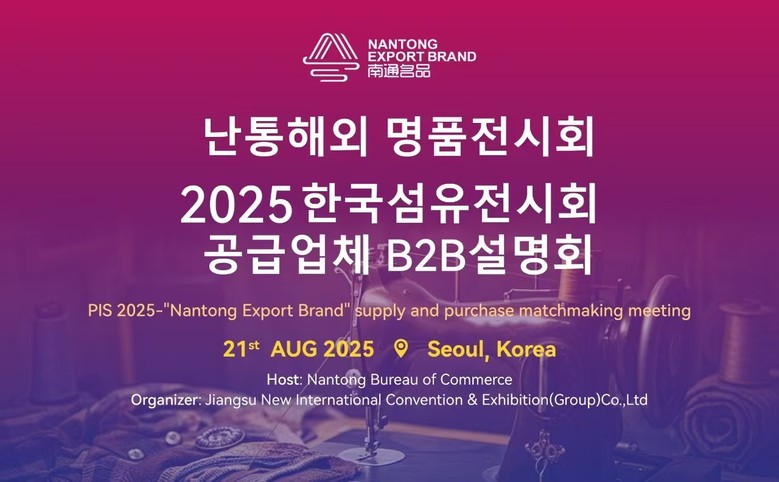 To further promote precise alignment between supply and demand, a dedicated PIS 2025 - "Nantong Export Brand" supply and purchase matchmaking meeting will also be held concurrently. The event will take place on August 21, 2025, in Room E7 of the Cox Exhibition Hall in Seoul, South Korea, bringing together professionals from Nantong textile companies and the Korean textile and apparel industry to establish an efficient platform for exchange and cooperation.