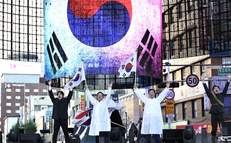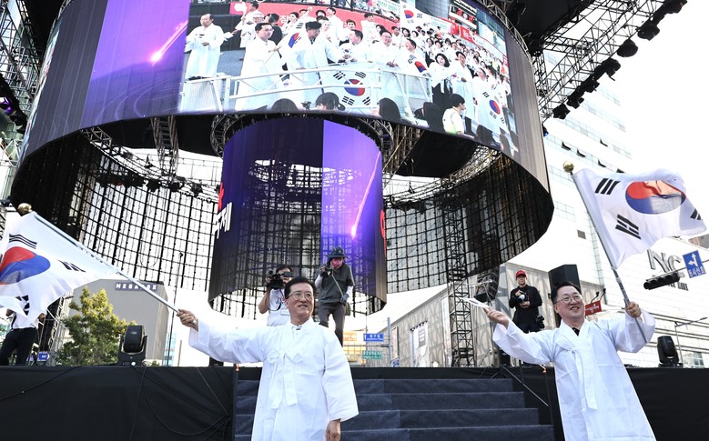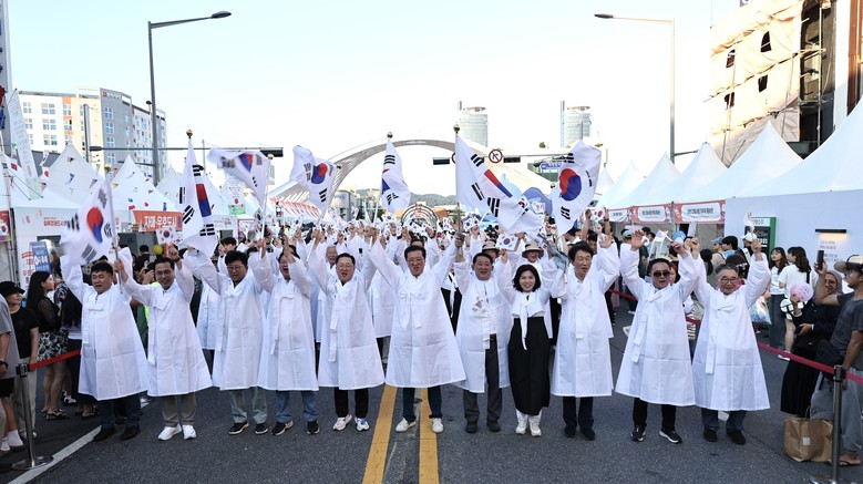 [대전 세계타임즈=이채봉 기자] 대전시의회 조원휘 의장은 15일 광복절 경축행사의 일환으로 대전0시축제장 일원에서 거행된 광복절 퍼레이드 행사에 대전시의회 의원들과 함께 두루마기를 입고 참여해, 트래블라운지부터 중앙로 무대까지 이어지는 구간을 행진했다.