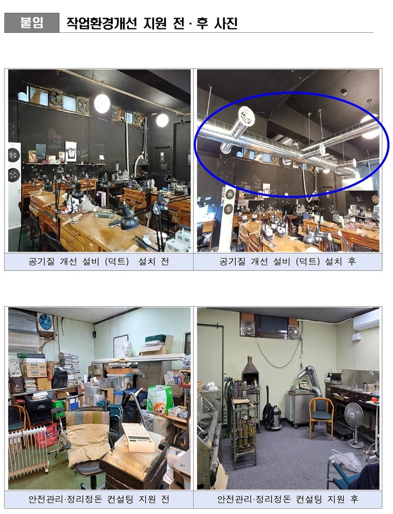 ‘도시제조업 작업환경 개선’은 열악한 작업환경에서 일하는 소공인을 대상으로 위해요소 제거와 작업능률 향상을 위한 설비를 제공하고, 자율안전관리체계가 지속될 수 있도록 안전관리 컨설팅을 지원하는 사업이다.