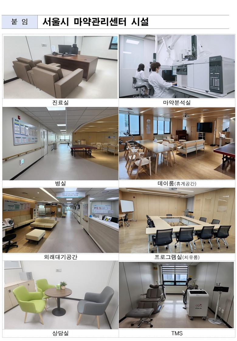 이번에 문을 연 ‘서울시 마약관리센터’는 마약 사용자에 대한 낙인이 아닌 조기 발견과 치료에 초점을 맞춘 통합형 병원이다. 전문 의료진의 상담과 검사는 물론 입원, 재활, 사후관리까지 이어지는 연속적 치료체계를 구축해 단약은 물론 건강한 사회복귀를 돕는 것이 핵심이다.