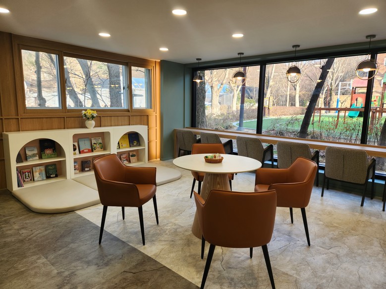 - 라운지는 인근 어린이공원 방향 전면 통창 조성으로 밝고 따뜻한 쾌적한 공간으로 조성