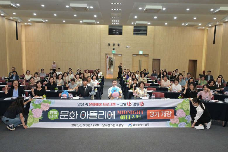 [남구 세계타임즈=이호근 기자] 울산 남구(구청장 서동욱)는 일상에서 문화예술을 만나는 남구만의 오감만족 특화 프로그램 ‘행복남구 문화 아뜰리에’ 3기를 5일 남구청 대강당에서 개강했다.