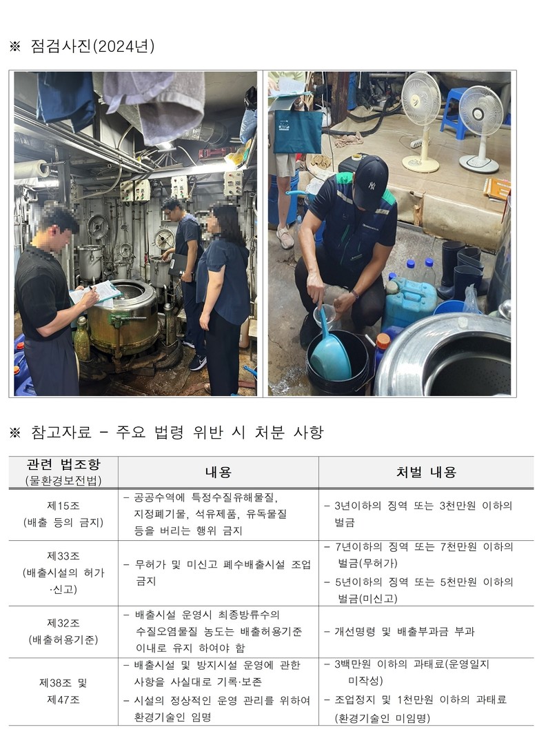 - 염색·도금 등 악성폐수 사업장, 세차장 등 취약시설 집중 점검…시·구 합동 단속