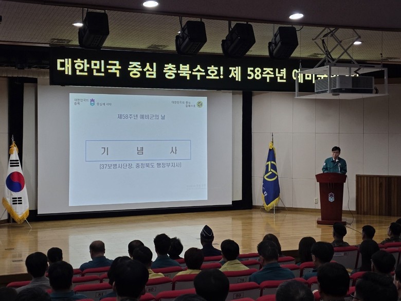 - 제58주년 「예비군의 날」 기념식 개최 - [충북 세계타임즈=이현진 기자] 충북도는 4월 3일 충북미래여성플라자 대강당에서 창설 제58주년 예비군의 날을 기념하여 김영환 충북도지사, 김경수 제37보병사단장, 도내 예비군 지휘관 등 200여 명이 참석한 가운데 예비군 창설의 의의를 선양하고 사명감과 자긍심을 고취시킴으로써 자주국방과 완벽한 지역 향토방위 결의를 다지는 기념식을 개최했다고 밝혔다.