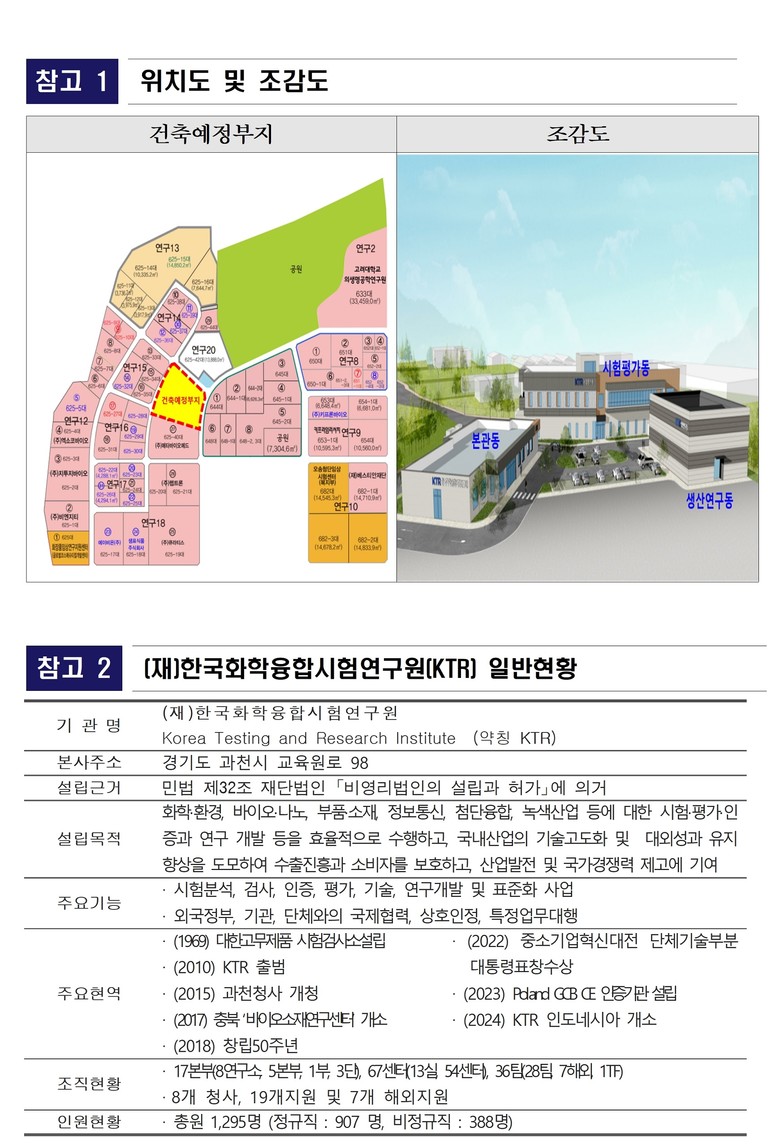 글로벌 클린화장품 산업화의 전초기지가 될 가칭 ‘KTR 화장품·바이오 연구소’는 부지면적 13,061㎡, 연 면적 3,682㎡(약 1,114평, 지상 2층) 규모에 커뮤니티동, 시험평가동, 생산연구동 등 신축 3개 동으로 조성되며, 내년 11월 준공을 목표로 한다.