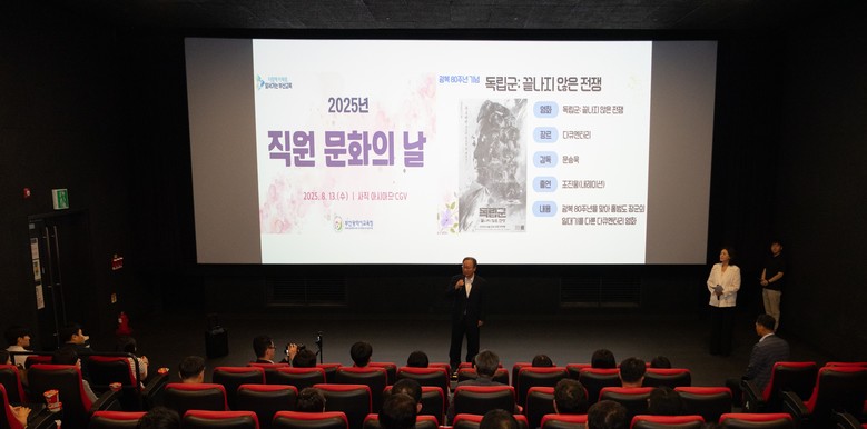 이날 행사에 함께한 김석준 교육감은 “홍범도 장군의 삶은 독립에 대한 열망과 민족에 대한 헌신의 상징”이라며, “이번 영화 관람이 직원 모두에게 깊은 울림과 성찰의 기회가 되었기를 바란다”고 말했다. 또 “앞으로도 직원들이 함께 공감하고 소통할 수 있는 다양한 문화행사를 계속 이어가겠다”고 덧붙였다.