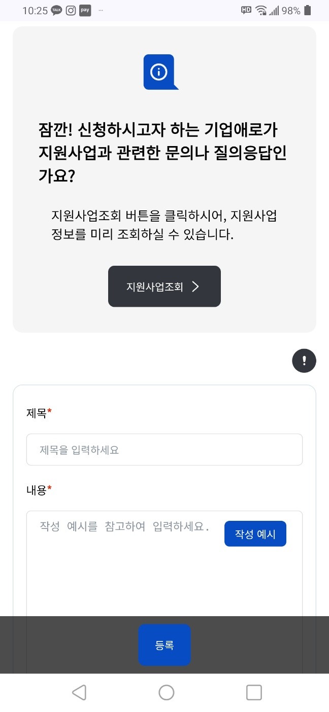 GPT 기능은 기업이 애로를 입력하면 AI가 내용을 정리하고 핵심을 요약해 보다 빠른 상담과 대응이 가능하도록 돕는다. 단순 문의는 즉시 해결 방향을 안내하고, 추가 지원이 필요한 경우에는 상담 신청과 전문가 연계로 이어진다.