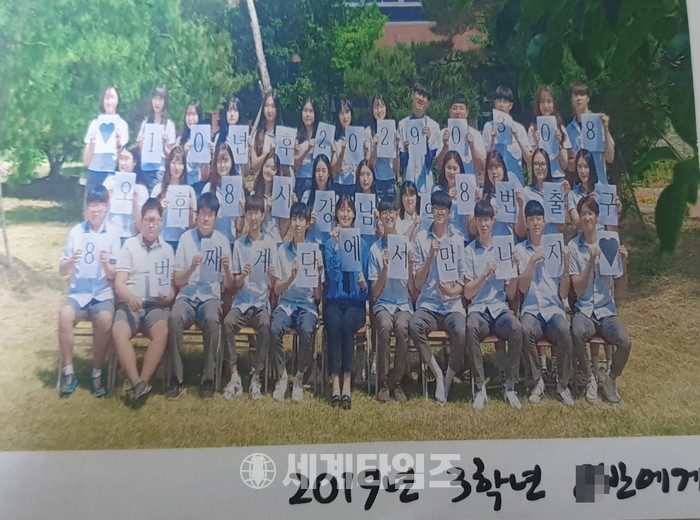 학년초 학생들과 찍은 사진 뒷면에 응원의 손 편지와 따뜻한 핫팩, 그리고 약간의 간식을 개별 포장하여 진정한 사랑으로 학생들을 응원하여 주셨다고, 선생님이 너무 고맙고 학부모로서 많은 위안이 되었다고 말을 이었다.