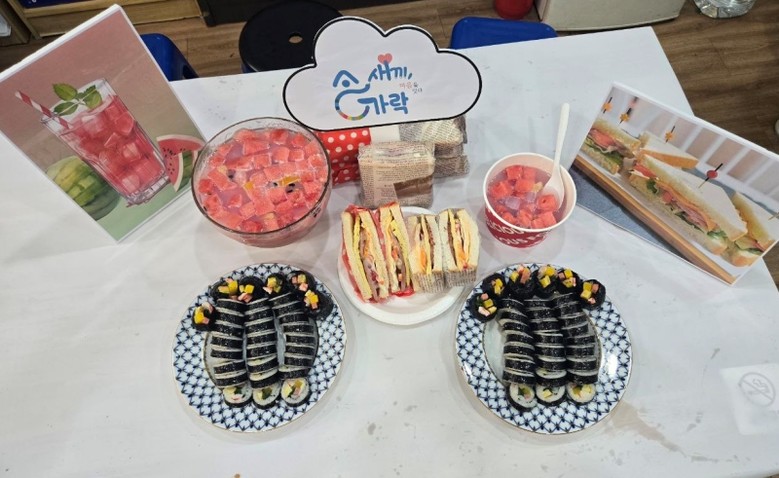 이번 프로그램은 장애인과 비장애인이 함께 요리를 하며 자연스럽게 소통하고 즐거운 시간을 보내기 위해 마련됐다. 참가자들은 식빵에 크래미, 햄, 토마토 등을 넣어 샌드위치를 만들고 여름철 별미인 수박 화채도 만들었다.