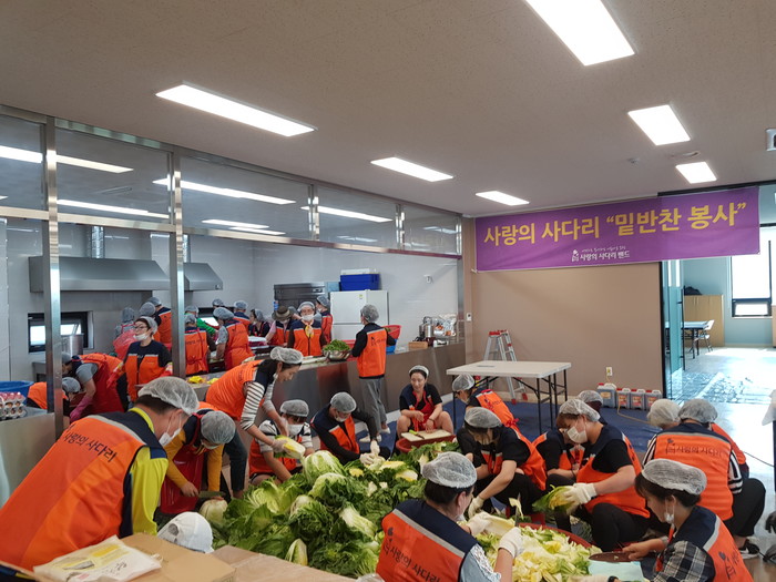 [세계타임즈 이장성 기자] 주말에도 봉사를 꾸준히 실천하고 있는 SNS 대전시 봉사단체 사랑의 사다리 밴드(리더 이정제)는 11일 오전9시~오후1시, 유성구 탑립동에 위치한 코리아종합안전(대표 송철영)에서 대전시 소외계층 270가정에 사랑의 밑반찬 봉사로 우리 사회의 따뜻한 사랑을 실천하였다.