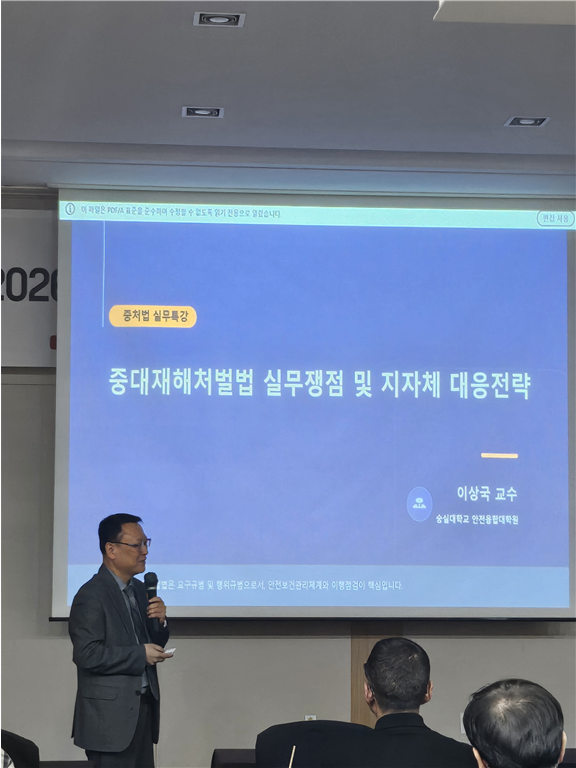 이날 워크숍은 “중대재해 없는 일터! 안전 강원특별자치도!”를 슬로건으로 예방 실천 결의대회와 실무 특강으로 진행됐다. 특히 숭실대학교 이상국 교수가 최신 법원 판례를 중심으로 현장 실무와 주요 쟁점을 진단하는 특강을 진행해 실무자의 법적 이해도와 현장 대응 역량을 높였다.