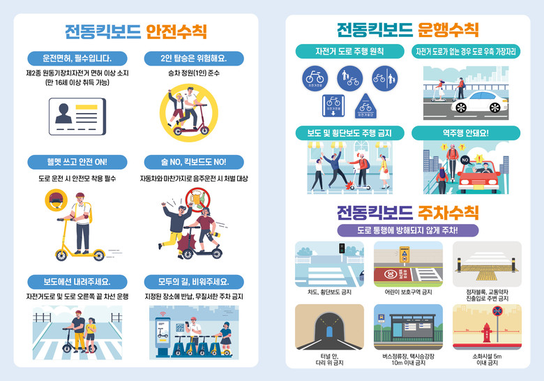 특히 전동킥보드 사고 발생의 주요 원인인 면허 자격, 이용 연령, 안전모 착용, 동승 금지 의무 등을 집중적으로 안내하고, 교육청과 협력해 청소년 대상 교육도 강화할 방침이다.