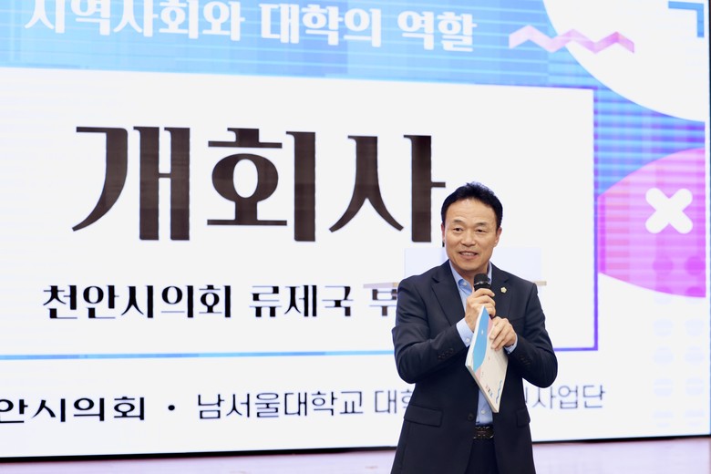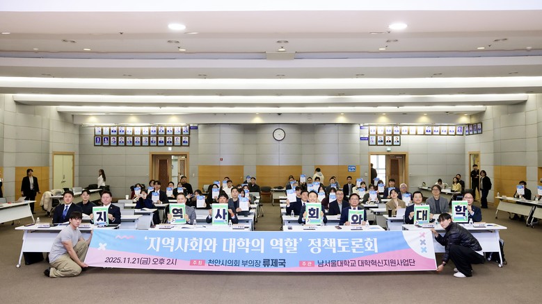 [천안시 세계타임즈=이현진 기자] 천안시의회(의장 김행금)는 11월 21일(금) 오후 2시 천안시청 대회의실에서 류제국 의원(더불어민주당,목천읍·북면·성남면·수신면·병천면·동면·원성1·2동)이 ‘지역사회와 대학의 역할’을 주제로 한 정책토론회를 성공적으로 마무리했다고 밝혔다.