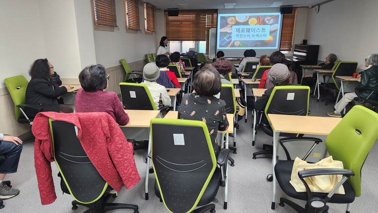 | ▲ 지난해 4월 수정노인종합복지관에서 탄소중립 관련 제로웨이스트에 관한 교육 진행 중이다 |