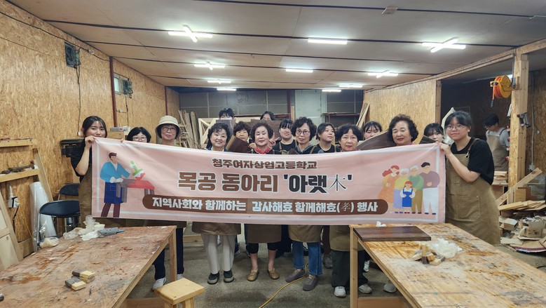 [충북 세계타임즈=이현진 기자] 청주여자상업고등학교(교장 김현희) 목공 창업동아리 <아랫木> 학생들이 21일(토), 함께 살아가는 지역사회 주민들을 초청해 ‘감사해효(孝), 함께해효(孝)’ 활동을 진행했다고 밝혔다.