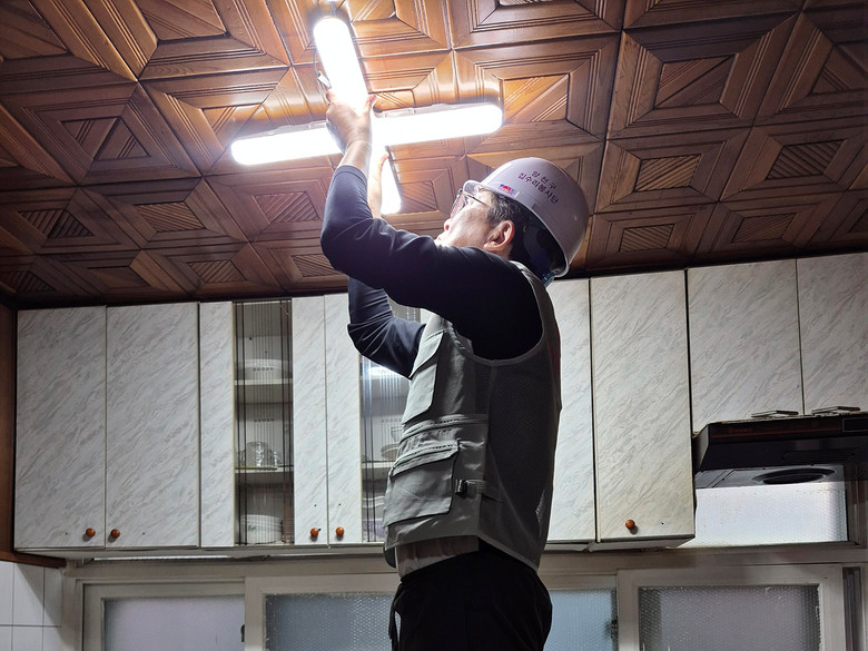 | ▲ 주거취약가구 전등 교체 중인 ‘양천구 집수리 봉사단’ |