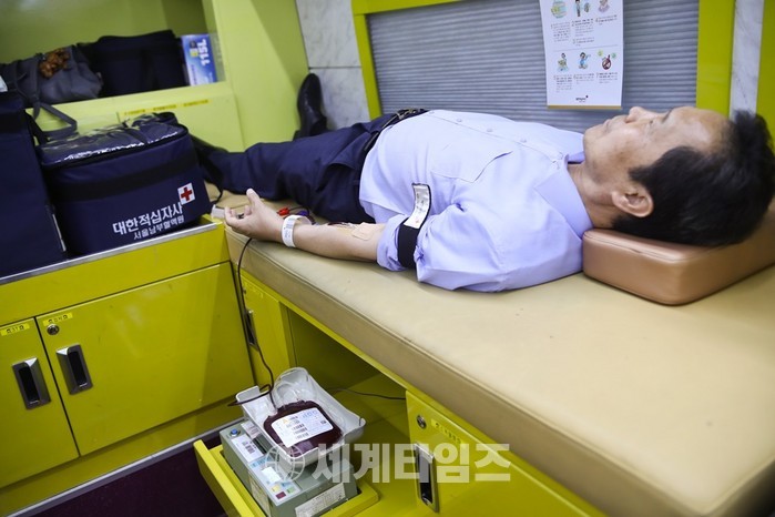 [세계타임즈 임인규기자 기자]한국마사회가 17일(목) 렛츠런파크 서울 복지관 앞에서 임직원을 대상으로 ‘사랑의 헌혈운동’을 펼쳤다. 대한적십자사 서울남부혈액원과 공동으로 시행한 이번 헌혈행사는 원활한 혈액수급을 지원하고 소중한 생명 나눔 운동에 동참하기 위한 것이다.