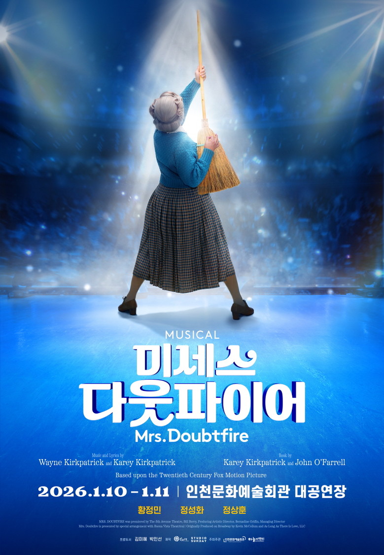 전 세대를 하나로 이어줄 따뜻함이 녹아있는 뮤지컬 〈미세스 다웃파이어〉는 8세 이상 관람 가능하며, VIP석 16만 8천 원, R석 14만 8천 원, S석 11만 원, A석 9만 9천 원이다. 예술회관 유료회원은 10% 할인 혜택을 받을 수 있다. 예매는 인천문화예술회관 누리집, 티켓링크, 놀티켓에서 가능하다.