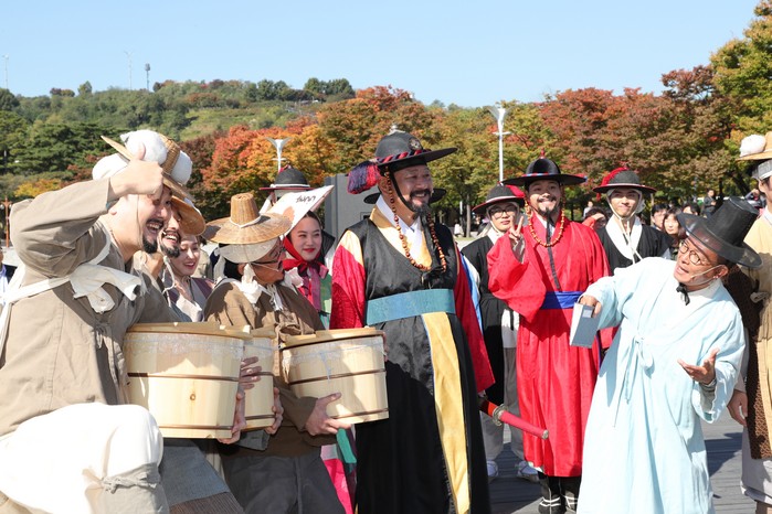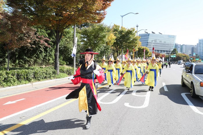 [포구문화 거리퍼레이드] 마포구 '제11회 마포나루 새우젓 축제'가 19일(금) 서울월드컵공원 평화의 광장에서 열렸다. 19일 오전 마포구청 앞 광장에서 출발해 행사지인 평화의 광장까지 이어진 '포구문화 거리퍼레이드'에는 고적대와 취타대, 풍물패 등의 행렬이 함께해 흥겨운 축제의 서막을 알렸다. 축제는 21일(일)까지 3일간 진행되며 품질 좋은 새우젓을 시중가격보다 15~20% 정도 저렴하게 구입할 수 있다.