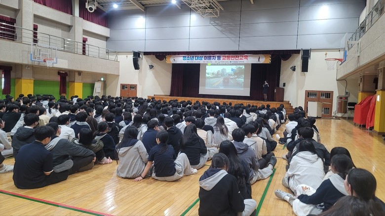 특히 개인형 이동장치 면허 취득 가능 연령이 16세 이상이며 승차정원이 1명이라는 점을 강조하며 학생들의 안전한 이용을 당부했다. 또한 이륜차 이용 시 교통신호 준수, 자전거 도로 이용, 안전모 착용 등 기본적인 교통안전 수칙의 중요성에 대해서도 교육했다.
