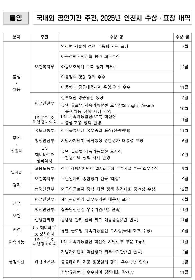 * 2025년 11월 25일 행정안전부가 주관한 ‘2025년 지방규제혁신 우수사례 경진대회’에서 인천시는 해당 사례로 장려상을 수상했다.