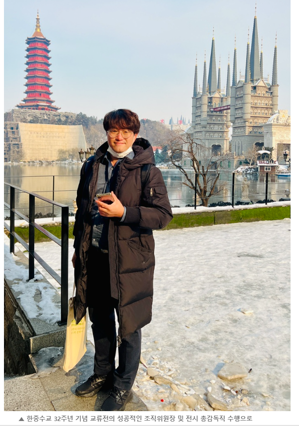 ▲ 한중수교 32주년 기념 교류전의 성공적인 조직위원장 및 전시 총감독직 수행으로 하북미술대 초빙교수로 임용된 양병구 한중미술협회 사무국장