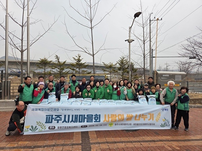 [파주시 세계타임즈=송민수 기자] 파주시새마을회는 다가오는 설 명절을 앞두고 지난 4일 월롱면 행정복지센터에서 ‘사랑의 쌀 나누기’ 행사를 개최하며 지역 내 이웃들에게 온정을 전했다.