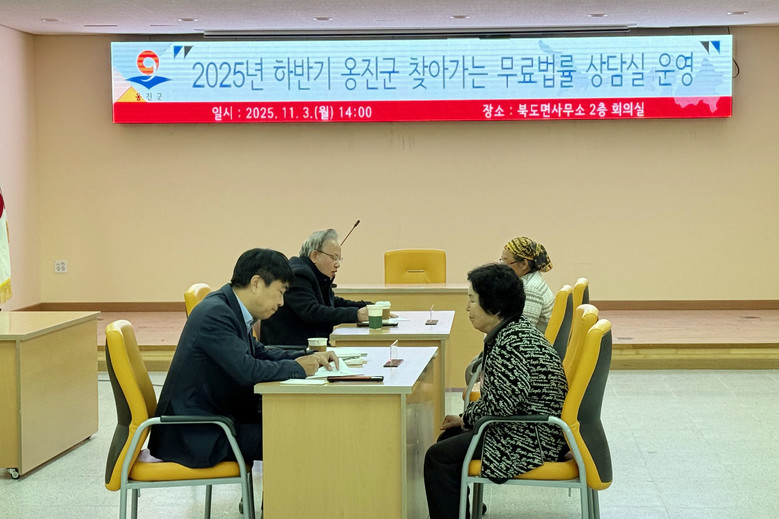 [옹진군 세계타임즈=심하린 기자] 옹진군(군수 문경복)은 주민의 법률서비스 접근성 향상을 위해 운영한 2025년 하반기 ‘찾아가는 무료법률상담실’을 지난 11월 3일 북도면을 시작으로 자월면, 영흥면, 연평면을 거쳐 11월 14일 덕적면까지 성공적으로 마무리했다고 밝혔다.