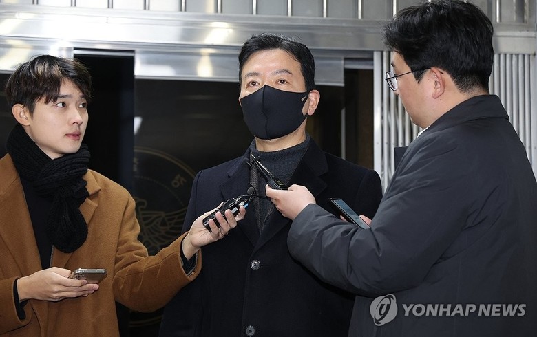 김성훈 대통령경호처 차장이 24일 오전 서울 서대문구 경찰청 국가수사본부 특별수사단에서 윤석열 대통령에 대한 체포영장 1차 집행을 저지한 혐의 조사를 위해 출석하며 취재진의 질문에 답하고 있다. 2025.1.24