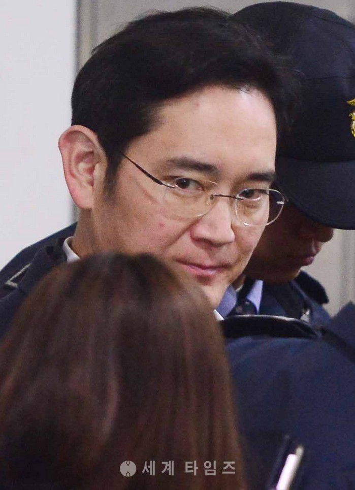 뇌물공여 등의 혐의로 구속된 삼성전자 이재용 부회장이 23일 서울 강남구 특검사무실에서 조사를 마친 후 구치소로 돌아가는 호송차로 향하고 있다. 2017.02.23