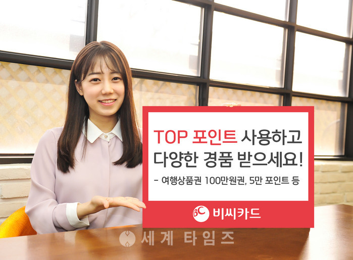 경품 이벤트는 4월 30일까지 온/오프라인 TOP 가맹점 에서 1천 TOP 포인트 이상 사용한 고객들 중 이벤트에 응모한 고객들을 대상으로 진행되며, 추첨을 통해 △ 여행상품권 100만원권(5명) △ TOP 포인트 쿠폰 5만원권(100명)을 제공한다. 이벤트는 BC카드 홈페이지 내 이벤트 페이지를 통해 응모할 수 있다.