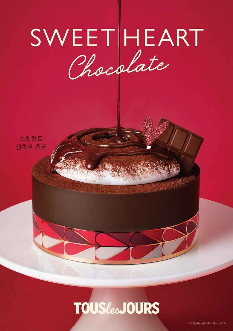 뚜레쥬르는 밸런타인데이를 맞아 인기 상품인 ‘생초코 초코 케이크’를 밸런타인데이 특별 에디션 ‘스윗하트 생초코 초코 케이크’로 선보인다고 밝혔다. 레드 컬러와 하트 모양 장식물로 밸런타인데이의 로맨틱 무드를 담아냈다.