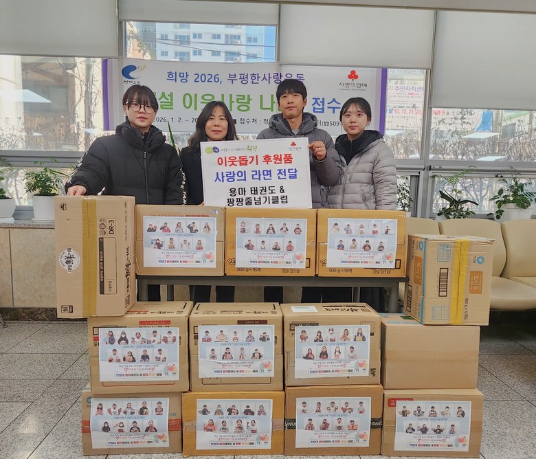 용마태권도는 매년 연말연시마다 원생들이 자발적으로 참여하는 ‘사랑의 라면 모으기’ 행사를 진행하고 있다. 올해도 아이들이 십시일반 마음을 모아 기부에 참여하며 지역사회에 훈훈한 감동을 전했다.
