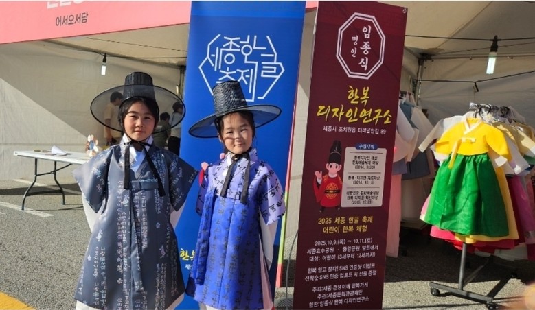 [세종 세계타임즈=이채봉 기자] 세종한글축제 마지막 날인 11일 오전, 시민참여형 프로그램 ‘충녕이네 한복가게’가 큰 인기를 끌었다. 3일 동안 270여 명의 어린이가 한복을 입고 축제의 즐거움을 만끽하며 대성황을 이뤘다.