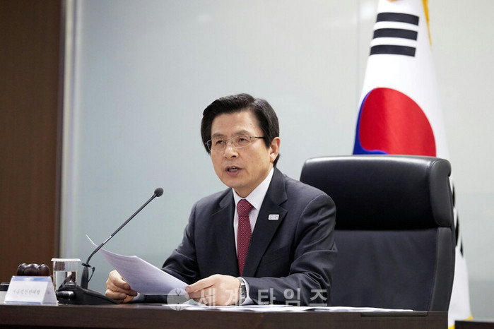 황교안 대통령 권한대행 국무총리가 6일 오전 청와대에서 북한이 미사일로 추정되는 발사체를 동해상으로 발사한 것과 관련해 국가안전보장회의(NSC) 상임위원회를 주재하고 있다. 2017.03.06. (사진=청와대 제공)