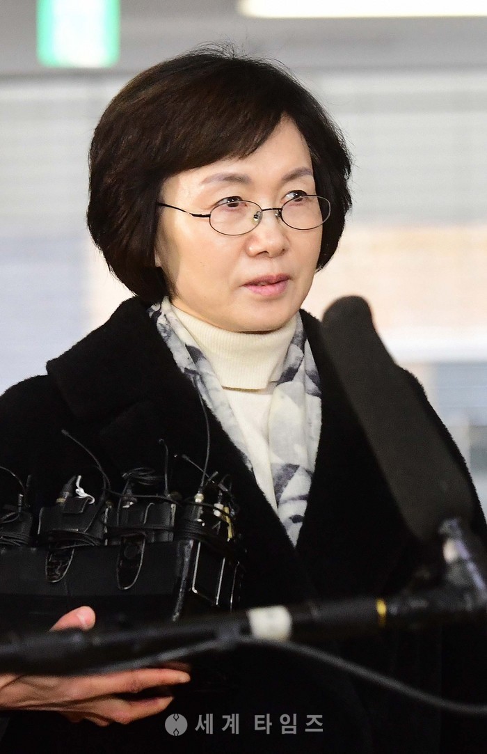 업무방해 혐의로 구속영장이 청구된 최경희 전 이화여대 총장이 영장실질심사에 앞서 24일 오전 서울 대치동 특별검사 사무실에 출석하고 있다. 최 전 총장은 최순실씨의 딸, 정 유라씨의 입시와 학사 비리 전반을 주도한 의혹을 받고 있다. 2017.01.24.