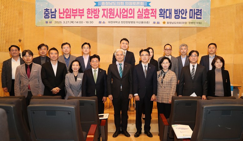 [충남 세계타임즈=이현진 기자] 충남도의회가 난임으로 어려움을 겪는 부부들의 임신 성공률을 높이고, 저출산 문제 해결을 위해 한방 지원사업 확대 방안을 논의하는 자리를 마련했다.