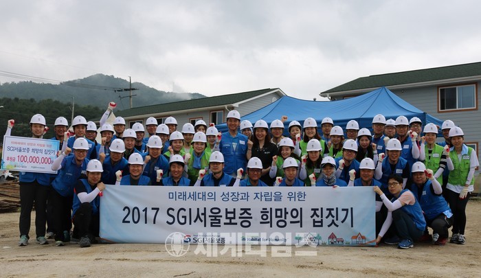 [세계타임즈 조철희 기자]SGI서울보증(일시대표이사 김상택) 임직원 50여명은 지난 7월 15일(토) 춘천의 해비타트 건축현장을 찾아, 소외계층 어린이들의 주거환경 개선을 위한 후원금 1억원을 전달하고 희망의 집짓기 봉사활동을 실시하였다.