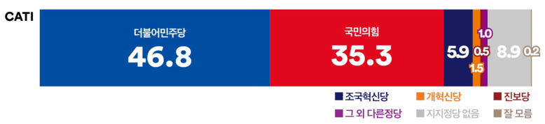 권역별로 살펴보면, ‘더불어민주당’은 호남권에서 78.9%의 압도적인 지지를 얻었으며, 서울(47.0%), 경인권 (50.0%), 충청권(44.2%)에서도 ‘국민의힘’을 앞섰다. 반면, ‘국민의힘’은 대구·경북에서 58.0%, 부·울·경에서 43.9%의 지지율을 얻으며 강세를 보였다.