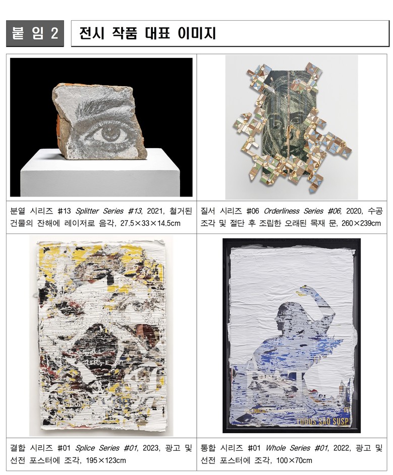 《그라피움 GRAPHIUM》…“도시 표면에 새겨진 시간과 기억 재구성하다” [울산 세계타임즈=이호근 기자] 울산시립미술관은 8월 14일부터 11월 2일까지 울산시립미술관 지하 2층 제2전시실에서 포르투갈 출신 세계적 예술가 빌스(VHILS, 본명 알렉산드르 파르투)의 개인전《그라피움 GRAPHIUM》을 개최한다고 밝혔다.