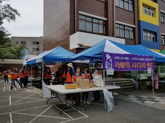 [대전=세계타임즈 이장성 기자] 대전광역시 봉사 단체 사단법인 사랑의 사다리 밴드(리더 이정제)의 회원 30명은 5일 오전9시, 제13회 와우키즈 페스티벌 행사장인 보성초등학교에서 바베큐통닭 120마리 봉사로 아이들에게 사랑을 나누었다.