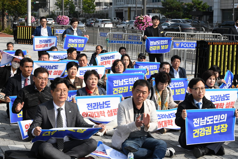 집회에 참석한 의원들은 광역지자체 중 유일하게 의과대학이 없는 전라남도의 현실과 의료생존권 보장을 호소하는 등 대국민 홍보 활동을 펼치며, 지방의 필수의료·공공의료체계 붕괴를 막을 수 있는 제도적 방안 마련을 촉구했다.